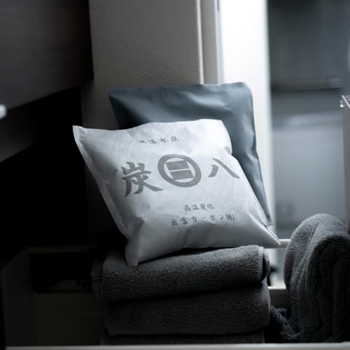 サイズバリエーションが豊富に用意されている炭八ですが、初心者なので取り敢えず1袋当たりのサイズ:19cm×19cm×厚さ3cm が5袋セットになっているやつを購入しました。適当な場所に設置してみて効果ありそうだな、良さそうだなと思えた暁には別サイズのリピートも視野に入ってきます。