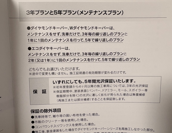 以下の通り、新車ボディコーティングにディーラーのものではなく
